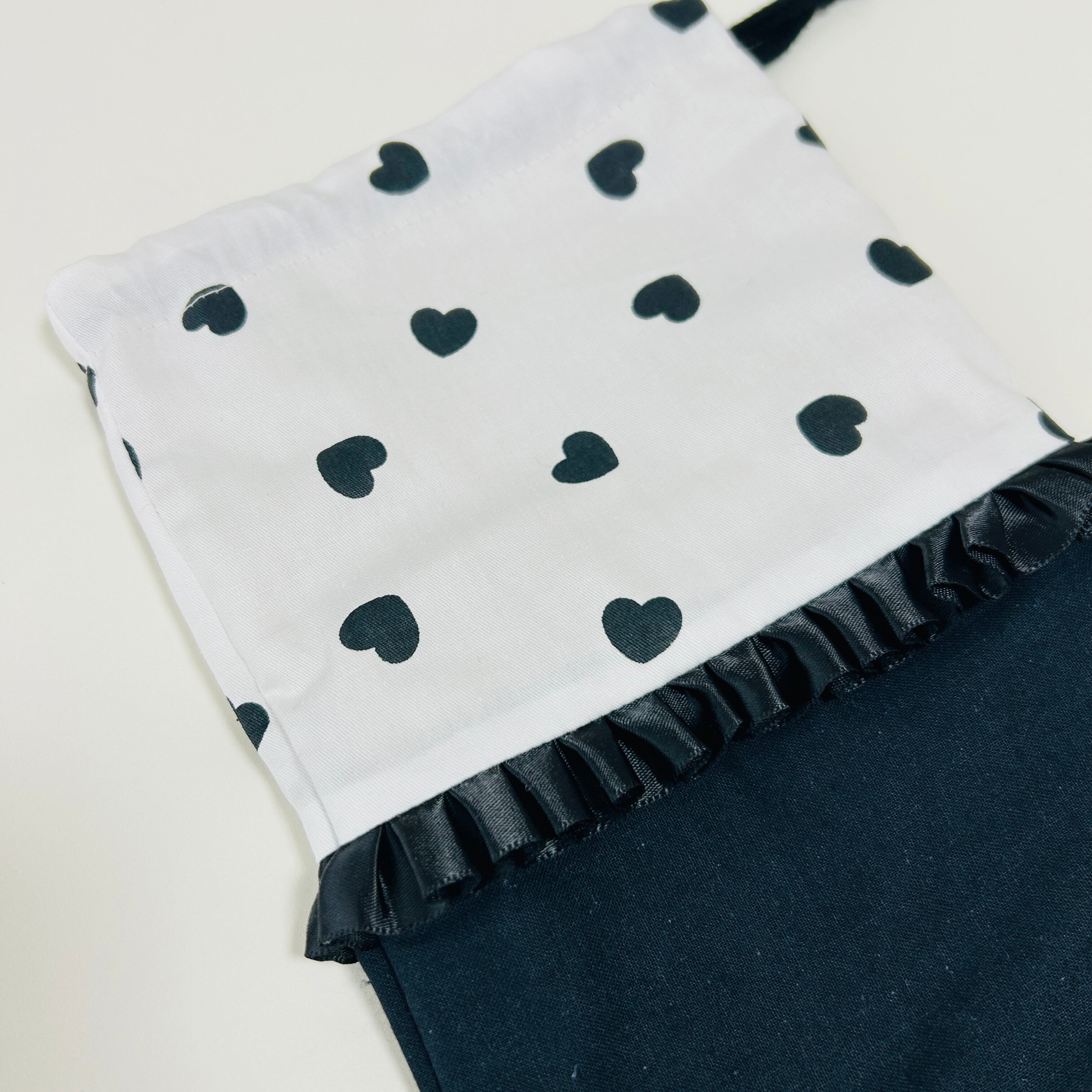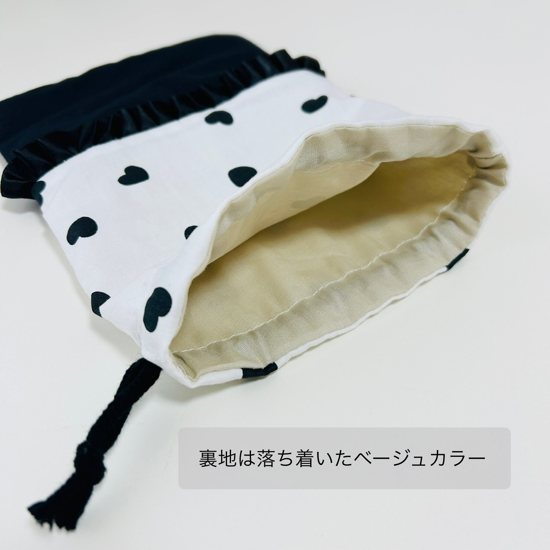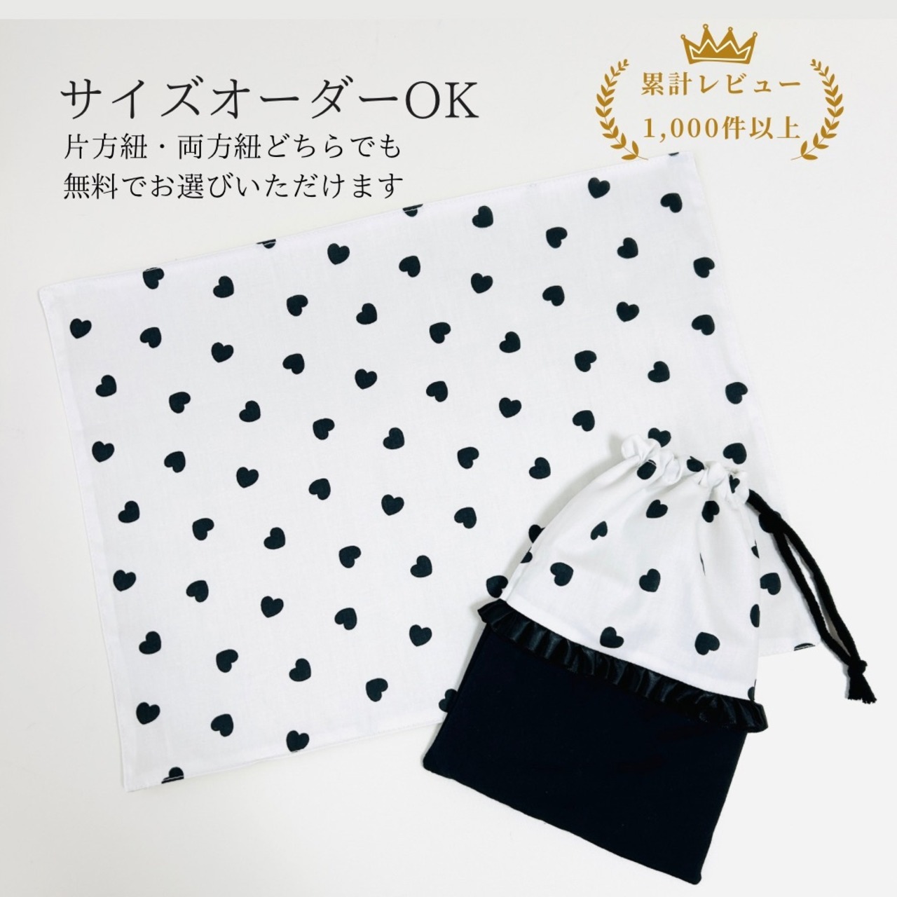 【黒ハート柄 巾着袋&ランチョンマット 2点セット】入園入学・通園通学・給食にぴったり◎
