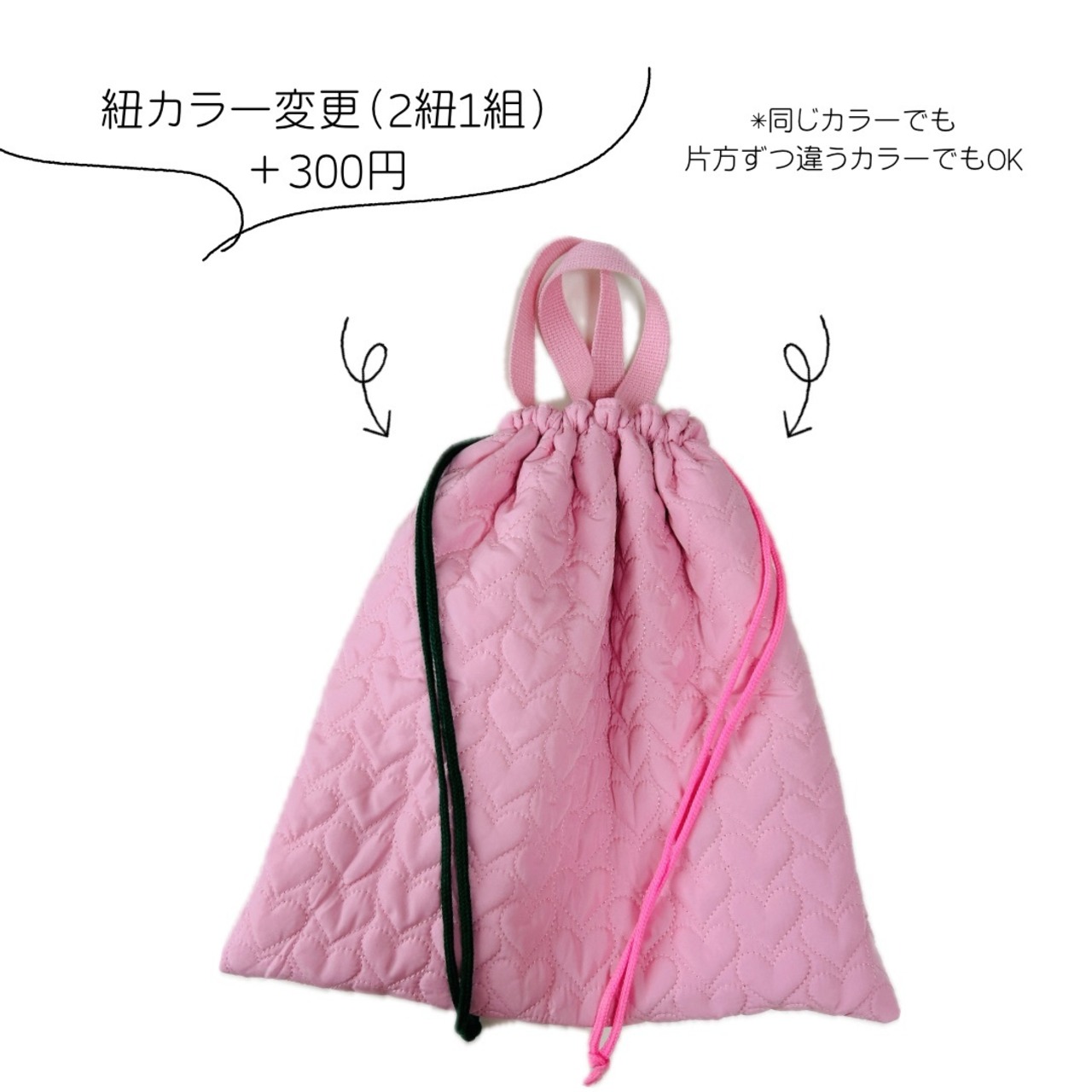 #巾着袋 #コップ袋 #ランチョンマット#ナフキン #サイズオーダー #給食セット #通園通学グッズ #入園セット #入園入学2026 #入園入学オーダー会2026 #ハート柄巾着 #裏地付き巾着 #女の子巾着袋 #キルティング巾着袋 #カナウミニ