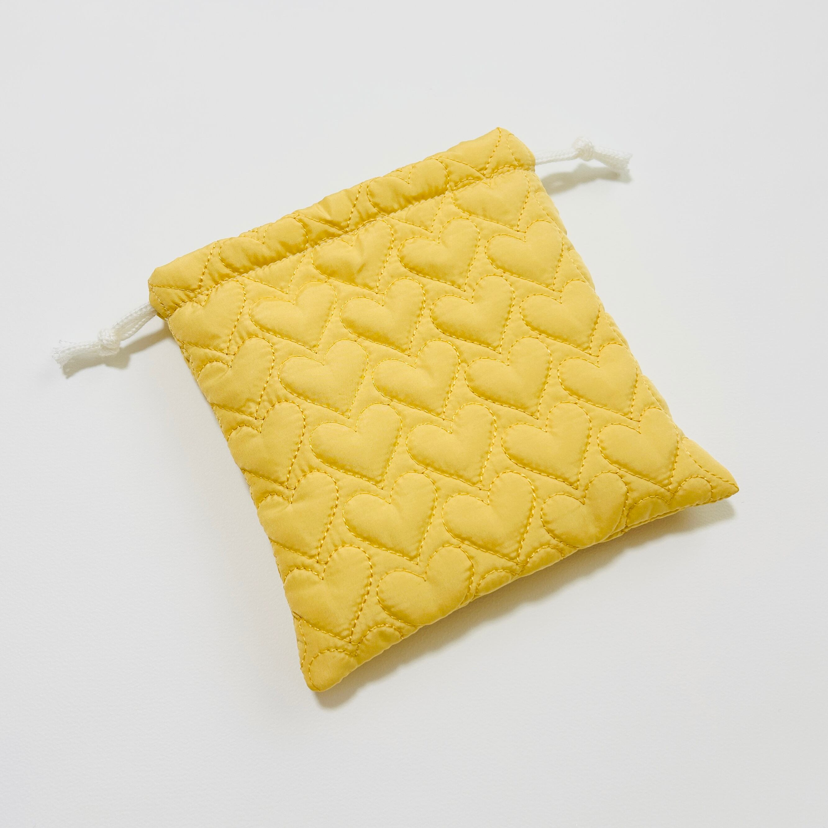 黄色ハート柄のキルティング巾着袋(裏地付き)女の子の入園入学準備・通園通学グッズ