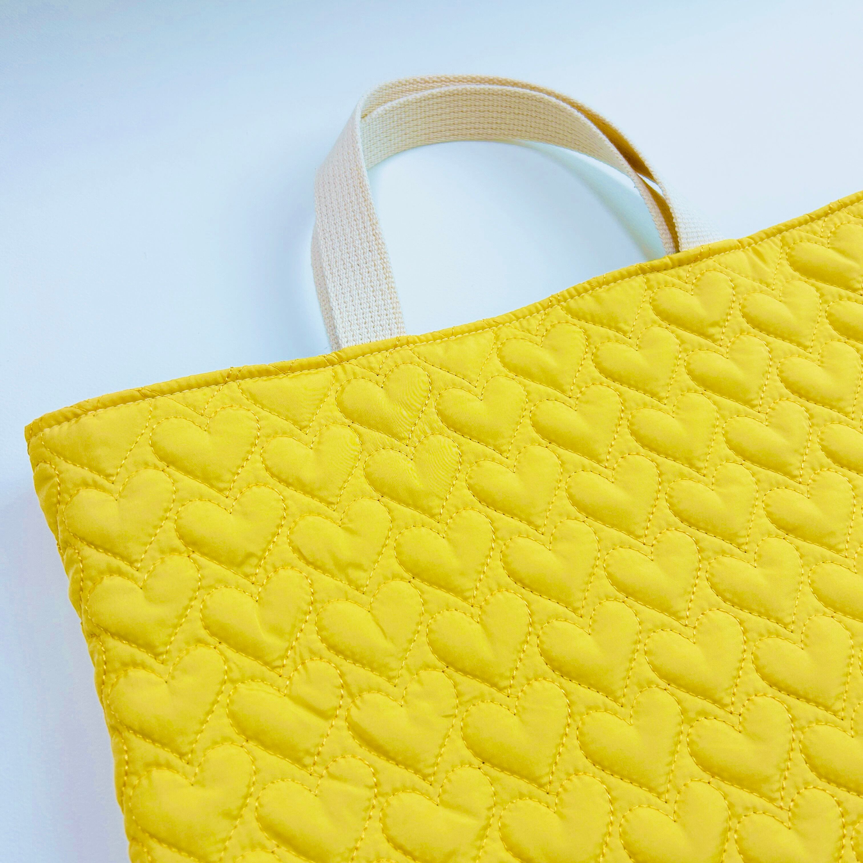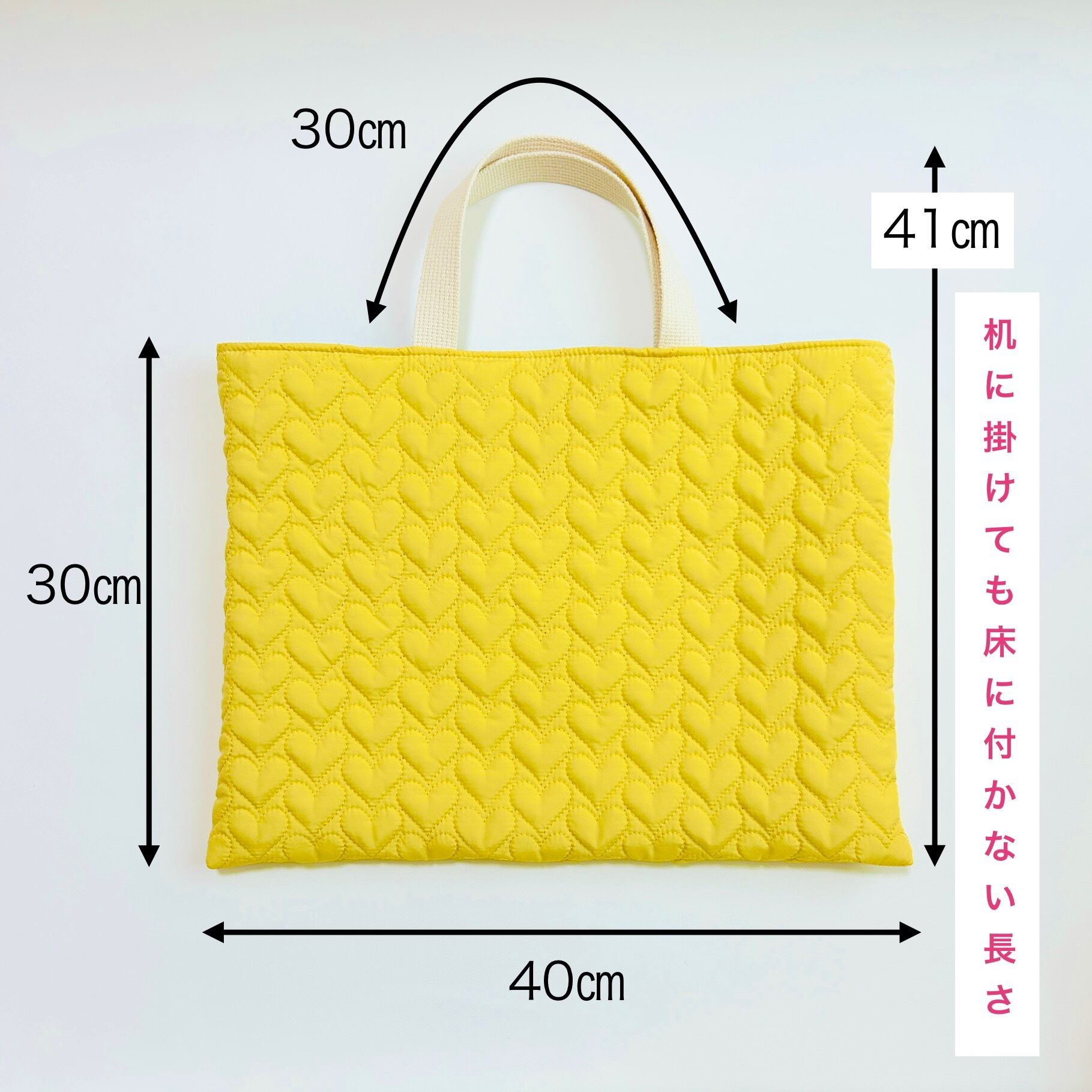 レッスンバッグ 女の子 キルティング ハート 入園 入学 通園 通学 絵本袋 手提げ袋 ピアノバッグ 黄色 裏地付き サイズオーダー可 お名前シール可 小学校 幼稚園 保育園 A4対応 日本製 カナウミニ | KANAU MINI