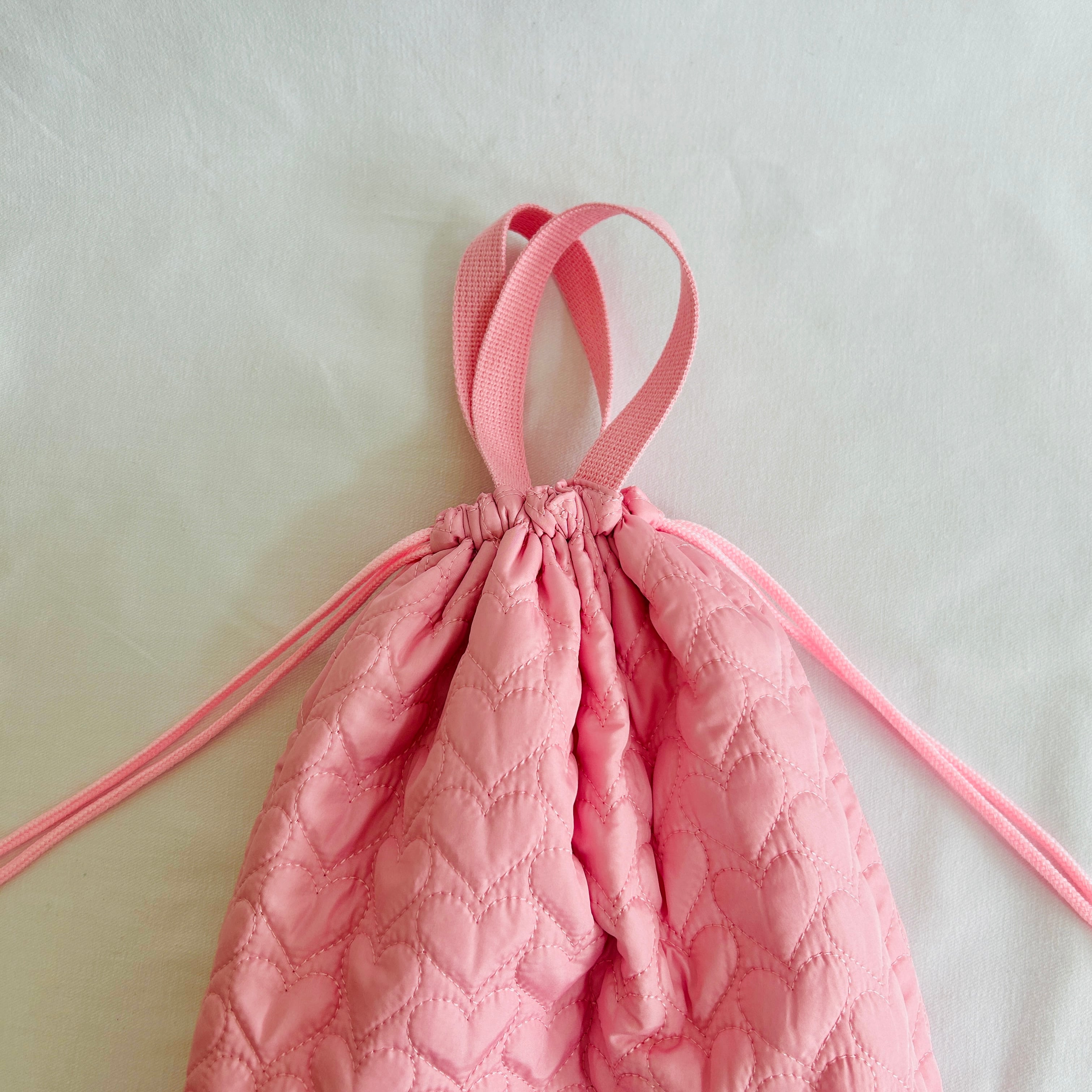 ナップサック 女の子 ピンク ハート柄 キルティング生地。巾着・お着替え袋・体操服袋にも。